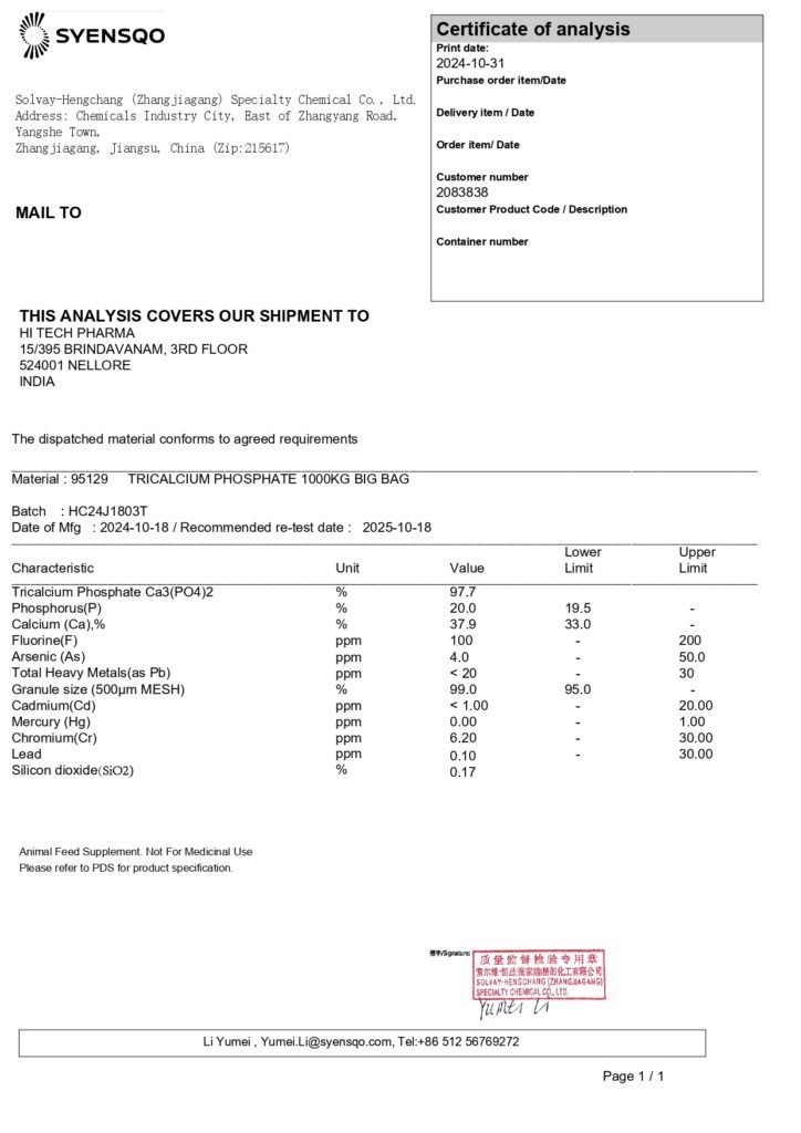 Expanding our Feed Phosphate portfolio and venturing into distribution, we’ve forged a strategic alliance with SOLVAY (rebranded as SYENSCO), a renowned global pioneer in advanced materials and specialty chemicals. This partnership marks a significant milestone, having secured exclusive distribution rights for Solvay’s Tricalcium Phosphate (with a 20% Phosphorus content, first ever globally), tailored for the Indian Poultry Industry. Additionally, our commitment extends to importing and trading Monocalcium Phosphate 22%, further enhancing our product diversity and market reach. We moreover hold inclusive distribution rights.